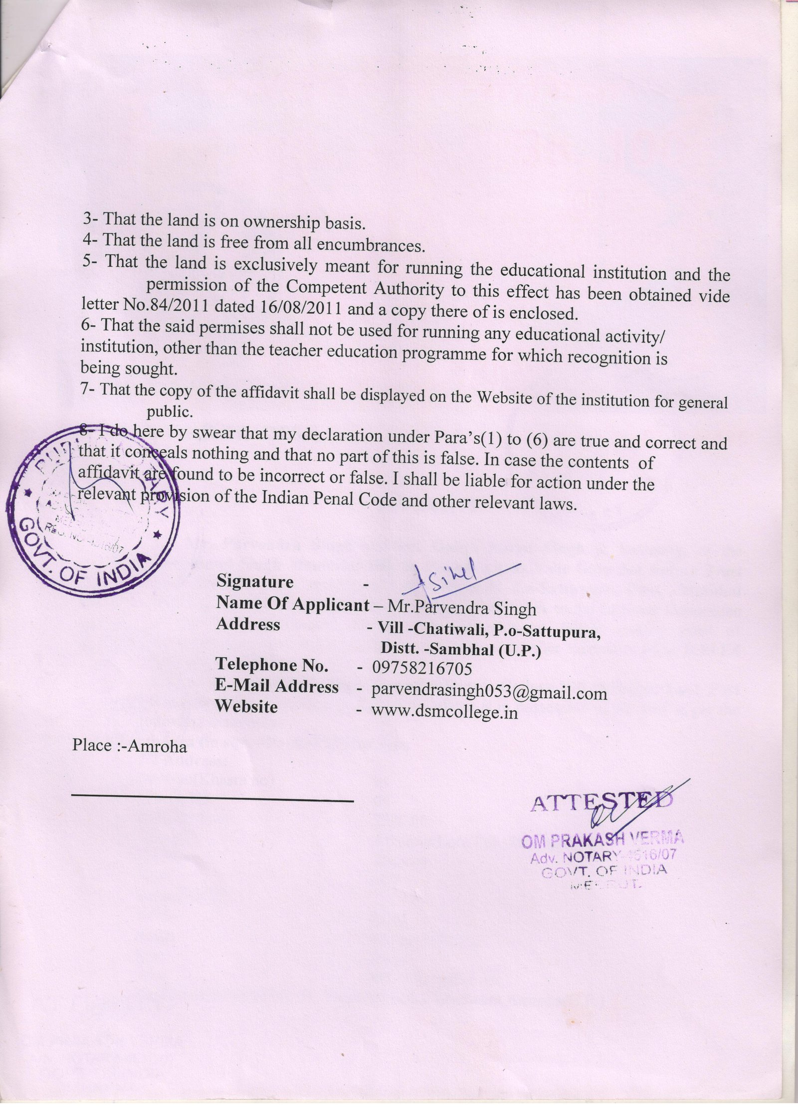 Affilation Afidavit